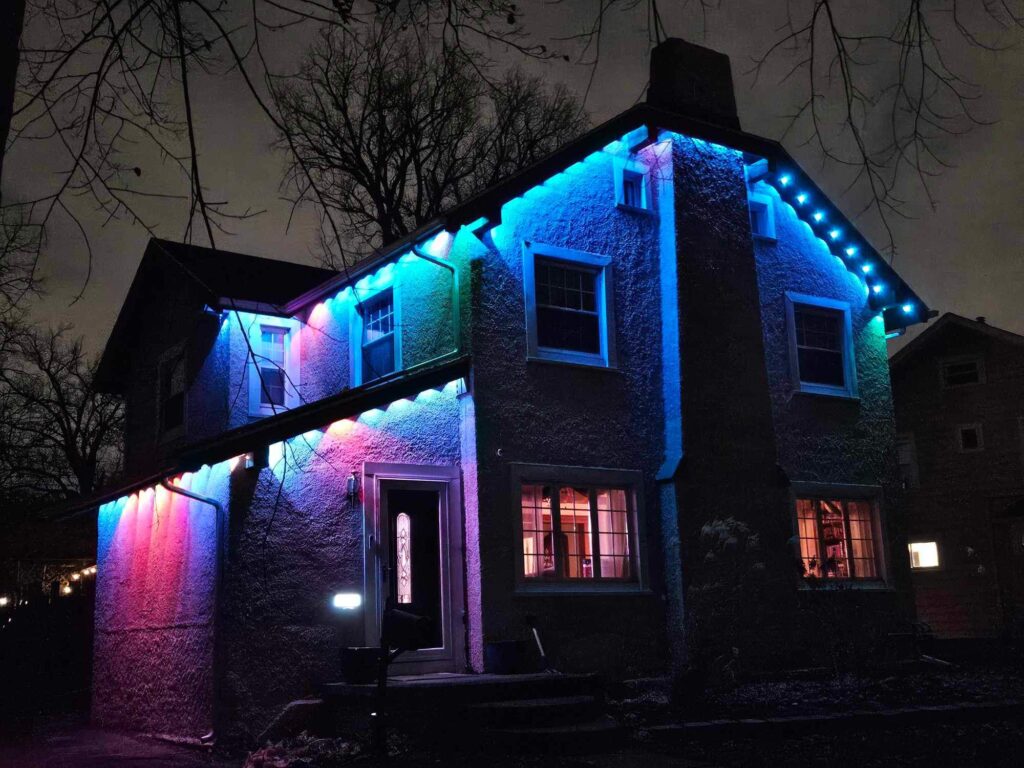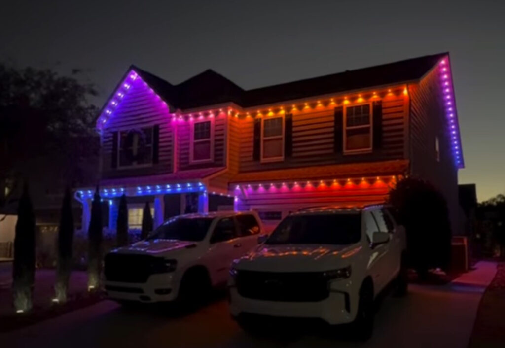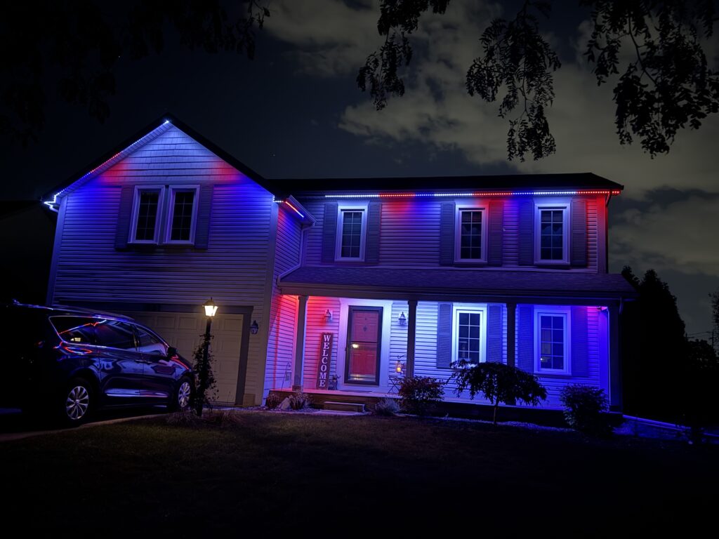 I specialize in permanent exterior lighting, using Jellyfish Lighting (aluminum track system) and Govee brand lighting.- both with an easy app and perfect for every day curb appeal, holidays, and special occasions. For those who love the tradition of seasonal decorating, I also offer Christmas light hanging to take the stress out of the holidays.