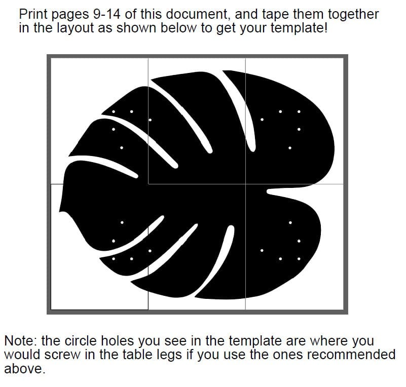 2. Full-Size Template Printout: Say goodbye to guesswork! Our meticulously designed full-size template ensures precision and accuracy in cutting and shaping the Monstera Leaf design for your table at an astonishing 24"x20" design. You can scale it up or down if you wish when printing. Simply print it out, lay it down, and start crafting with confidence.