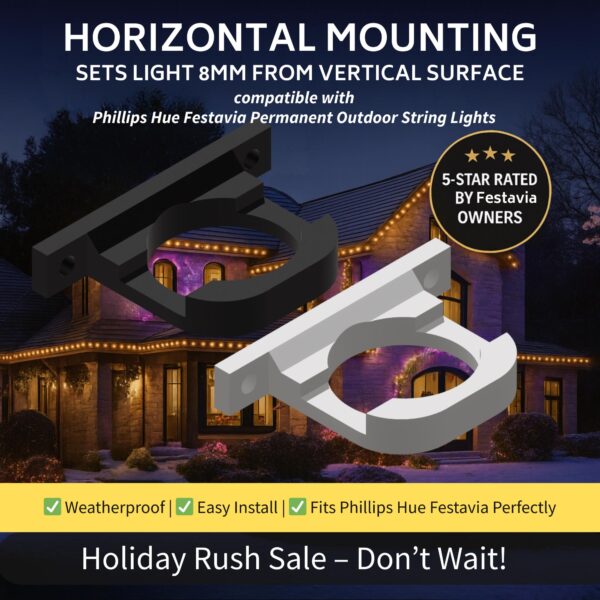 • This option includes ONE single bracket only, intended for size and fit testing on your Phillips Hue Festavia Permanent Outdoor String Lights.
